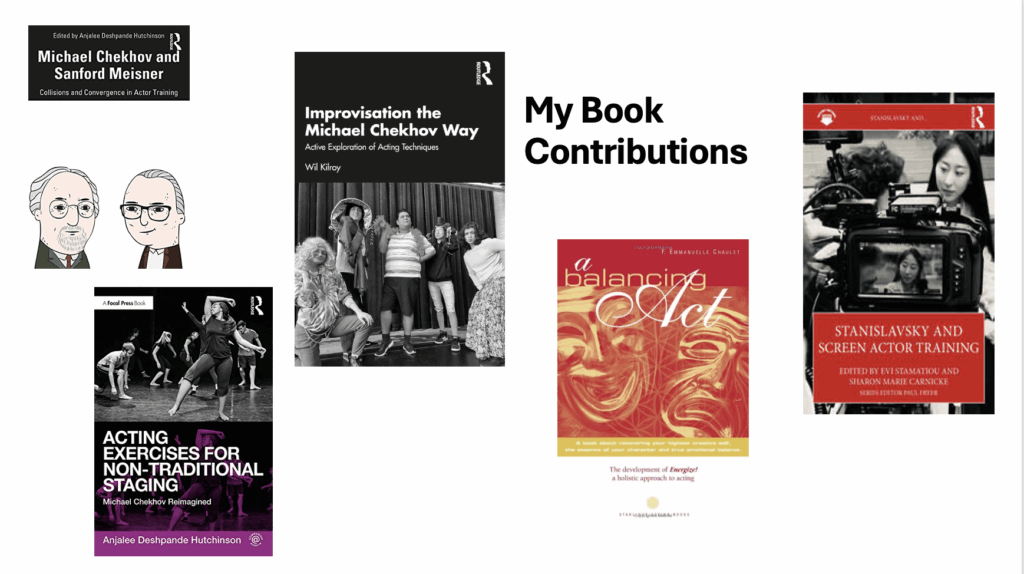 - Michael Chekhov and Sanford Meisner: Collisions and Convergence in Actor Training, by Anjalee Deshpande Hutchinson, with LLD, WK contributing